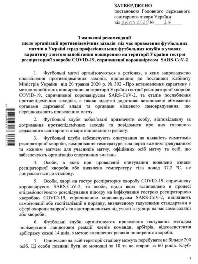 Читайте такжеМинздрав разрешил возобновить футбольный сезон в Украине с 30 мая